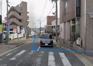 ④「関田名古屋線」に出たら横断歩道を渡ってから右折します。 | ![]() |